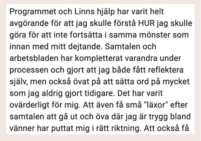💪 Med min hjälp tar du makten över dina dejtingmönster, blir trygg i dig själv och lär dig skapa en hållbar kärleksrelation ❤️